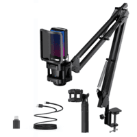 Microfone Com Braço Articulado RGB Gravação Usb Preto -NAC