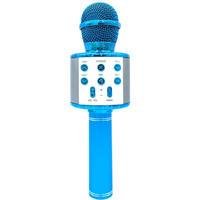 Microfone Sem Fio Para Gravação De Canto Com Luzes Led Colorido Infantil Azul -NAC