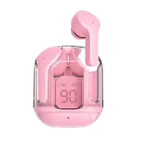 Fone De Ouvido Bluetooth Rosa Sem Fio LED Display Digital Touch Sem Fio Air 31 Fitness Gamer Case Transparente -NAC