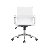 Cadeira De Escritório Diretor Em Couro Branco Com Braços Cromados -NAC