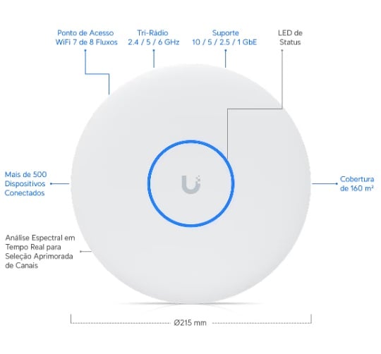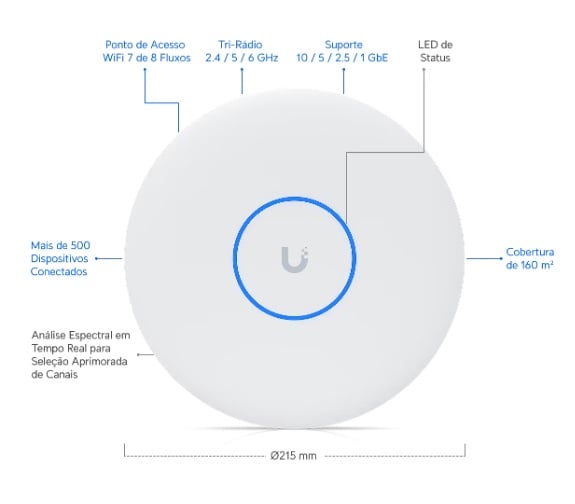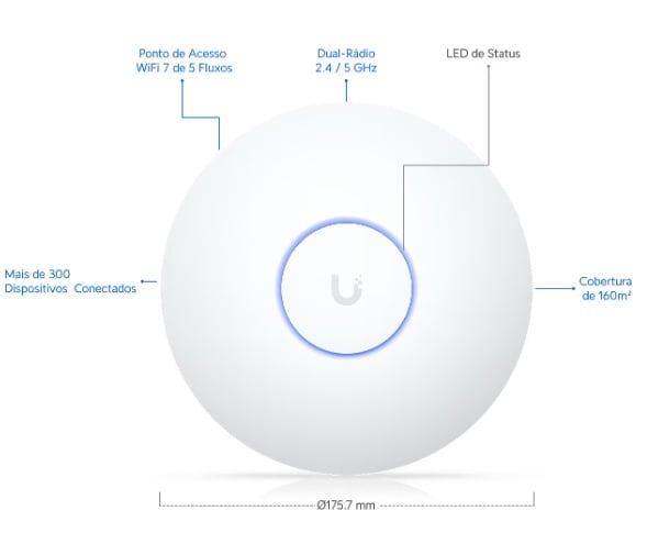 Access Point Ubiquiti Unifi U7-PRO – 3X3 MIMO – +300 usuários – Wi-Fi 7 – 802.11be -NAC