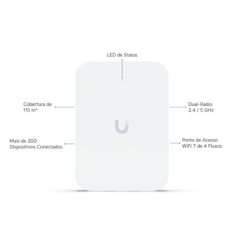 Access Point Ubiquiti UniFi U7-LR – Wi-Fi 7 – 2.4/5.0 GHz – 4300 Mbps – 1× Porta 2.5GbE PoE -NAC