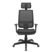 Cadeira Presidente Plaxmetal Escritório Brizza NR 17, Mecanismo Relax, Assento Couro Ecológico, Com Apoio De Cabeça, Preta -NAC