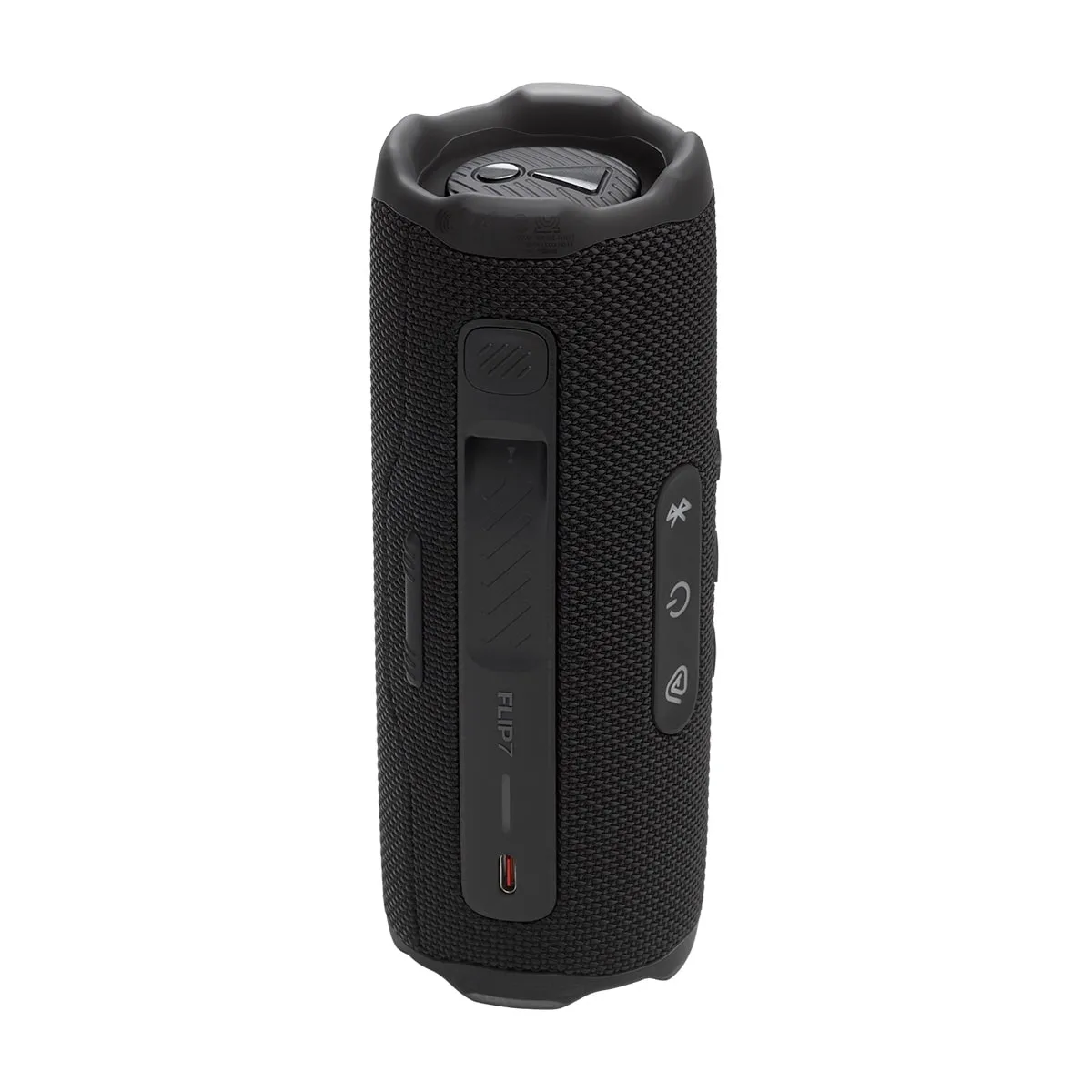 A JBL Flip 7 incorpora 77% de plástico e tecido reciclados pós-consumo e tecido 100% reciclado na grade da caixa de som. Também é embalada em papel certificado pelo FSC impresso com tinta à base de soja.