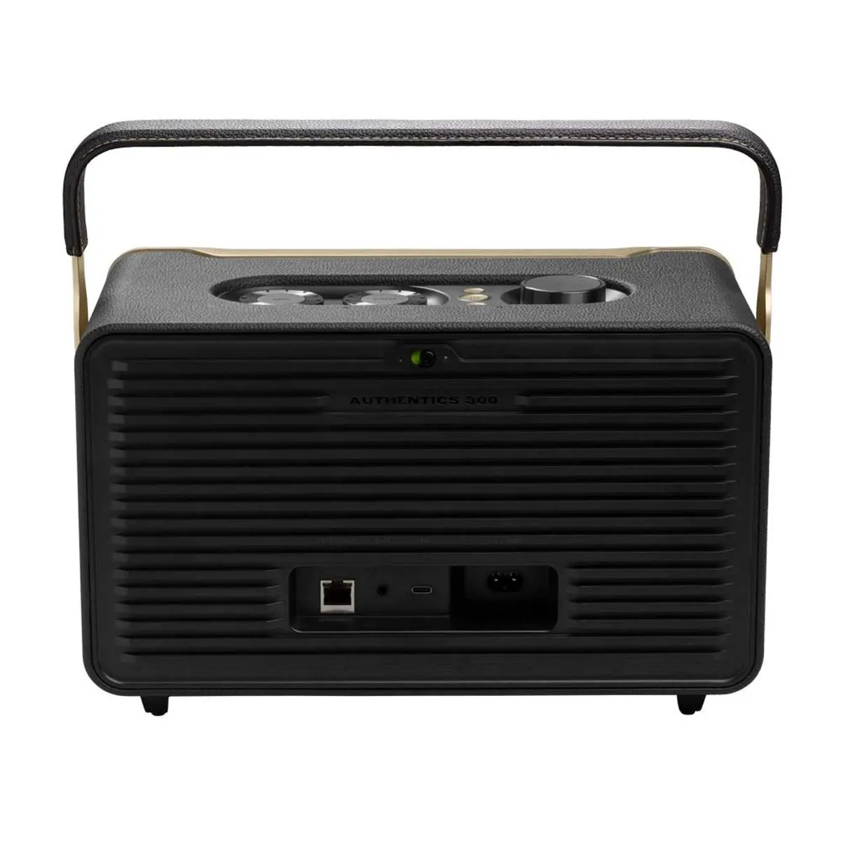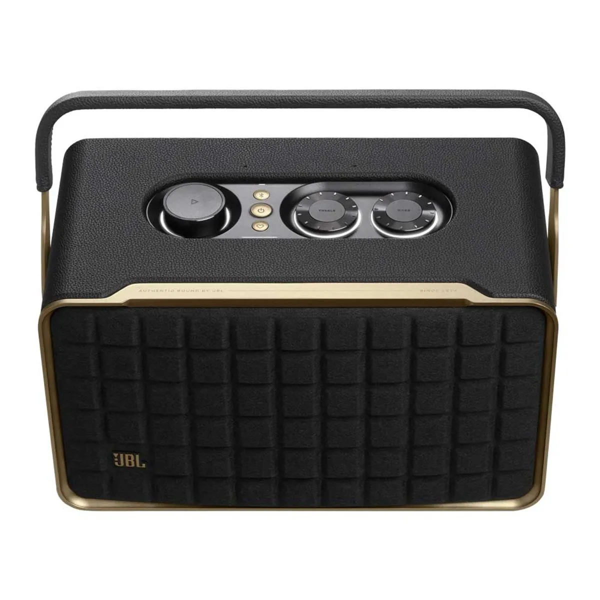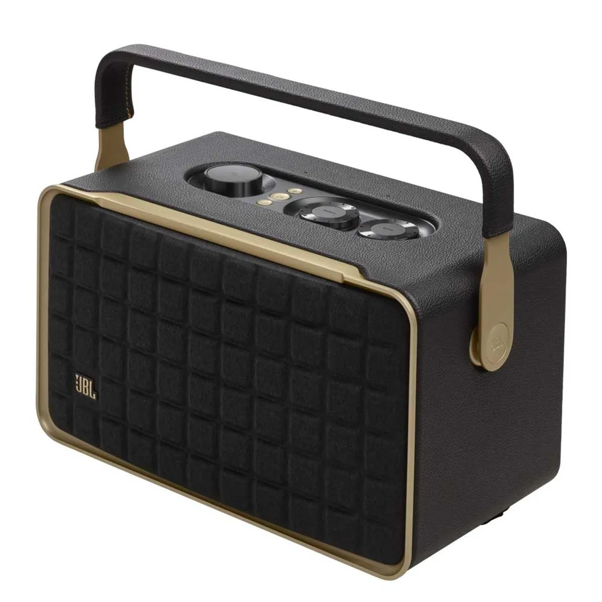 O JBL Authentics 300 oferece um estilo icônico inspirado nos designs retrô clássicos da JBL, em uma caixa de som portátil doméstica com agudos cristalinos e graves profundos que fica ótima em qualquer decoração.