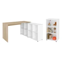 Conjunto Escrivaninha E Estante Herne Carvalho Branco -NAC