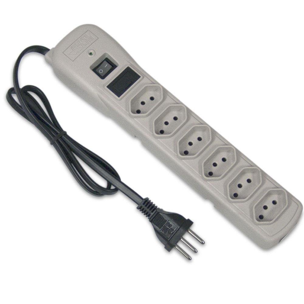 Marca: Force Line Modelo: 5004 Cor: Cinza – Potência: 1270W para 127V ou 2200W para 220V – Tensão: Saída 127/220V – Gabinete: Plástico PP – Fixação, Com furo para fixação. Pode ser fixado na horizontal ou vertical – Chave: Chave liga/desliga embutida – Indicador, Luminoso – Plugues e Tomadas: Nova Norma – NBR14136 – Tomadas: 6x tomadas elétricas tripolares – Comprimento do Cabo de Força 0,8m Tamanho da Embalagem (CxLxA) 13 x 4,5 x 39 cm Peso Produto mais embalagem 0,3 Kg Garantia do Fornecedor3 meses Peso:500 gramas (bruto com embalagem) -NAC