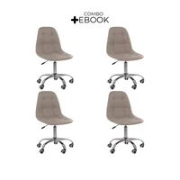 Kit 04 Cadeiras Office Eiffel Botonê, Ajustável, Base Giratória – Bege -NAC