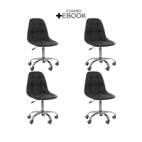 Kit 04 Cadeiras Office Eiffel Botonê, Ajustável, Base Giratória – Preto -NAC
