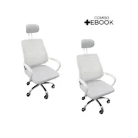 Kit 2 Cadeiras Escritório Oficial Webshop, Diretor Mesh, Suporta 120 kg, Encosto Cabeça, Branco -NAC