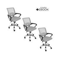 Kit 3 Cadeiras De Escritório Oficial Begonia, Mesh Ergonômico, Cinza -NAC