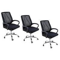 Kit 3 Cadeiras De Escritorio Oficial Esteirinha Mesh Ergonomica, Preto -NAC
