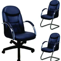 Kit 3 Cadeiras Ergodecor Escritório Day suporta até 130kg Preta Base Preta, 1 Giratória + 2 Fixas, 100% Nacional -NAC