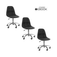 Kit 3 Cadeiras Office Eiffel Botonê Oficial Webshop, Ajustável, Base Giratória, Preto -NAC