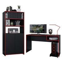Kit Caemmun Mesa Gamer Armário Alto Escritório Pixel Preto -NAC