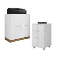 Kit Escritório Armário Baixo Caemmun,Gaveteiro Cubic Branco -NAC
