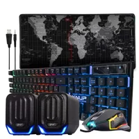 Kit Gamer 4 Em 1: Teclado Semi Mecanico Antighosting LED RGB + Mouse 6 Botões 4800 Dpi LED Rainbow + Caixa De Som 12w Rm + Mouse Pad 80x40cm -NAC