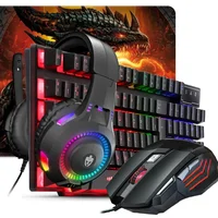 Kit Gamer Teclado Semi-mecânico + Mouse RGB 3200 Dpi + Mouse Pad + Headset – Compatível Com Computador Notebook E Vídeogame -NAC