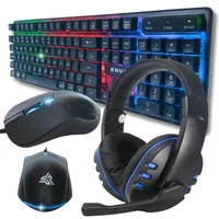 Kit Gamer Teclado Semi Mecanico RGB Usb + Mouse 1600 Dpi LED Azul + Headset 40 Mm Microfone Ajustável P2 – Azul -NAC