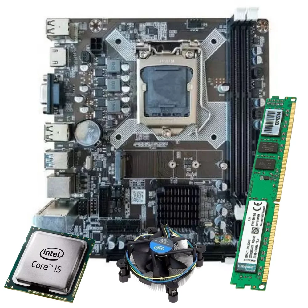 Conteúdo kit: – placa mae 1150p fnx h81 ddr3 s v rede giga ger 4. – processador intel 1150p core i5 g4 4590 3.30ghz – 6mb – oem. – cooler processador intel 1155p 1150p 1151p selo azul. – memoria desktop ddr3 8gb kingston 1600mhz kvr16n11/8. -NAC