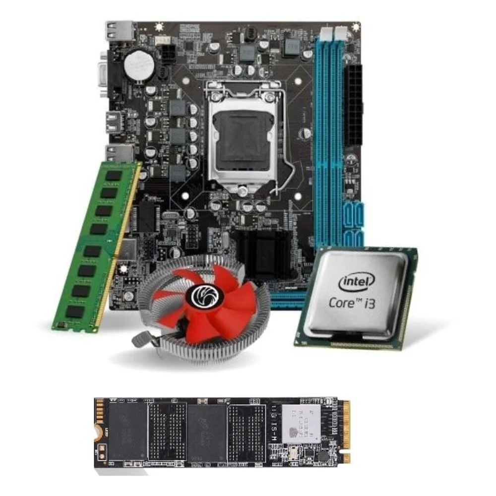 Kit composto por placa h61 (lga 1155 ddr3) rede 10/100/1000 com m2 processador i3-3220 intel memoria 4gb ddr3 1600 mhz cooler lga ssd 256 m2 nvme 2280 garantia – 90 dias -NAC