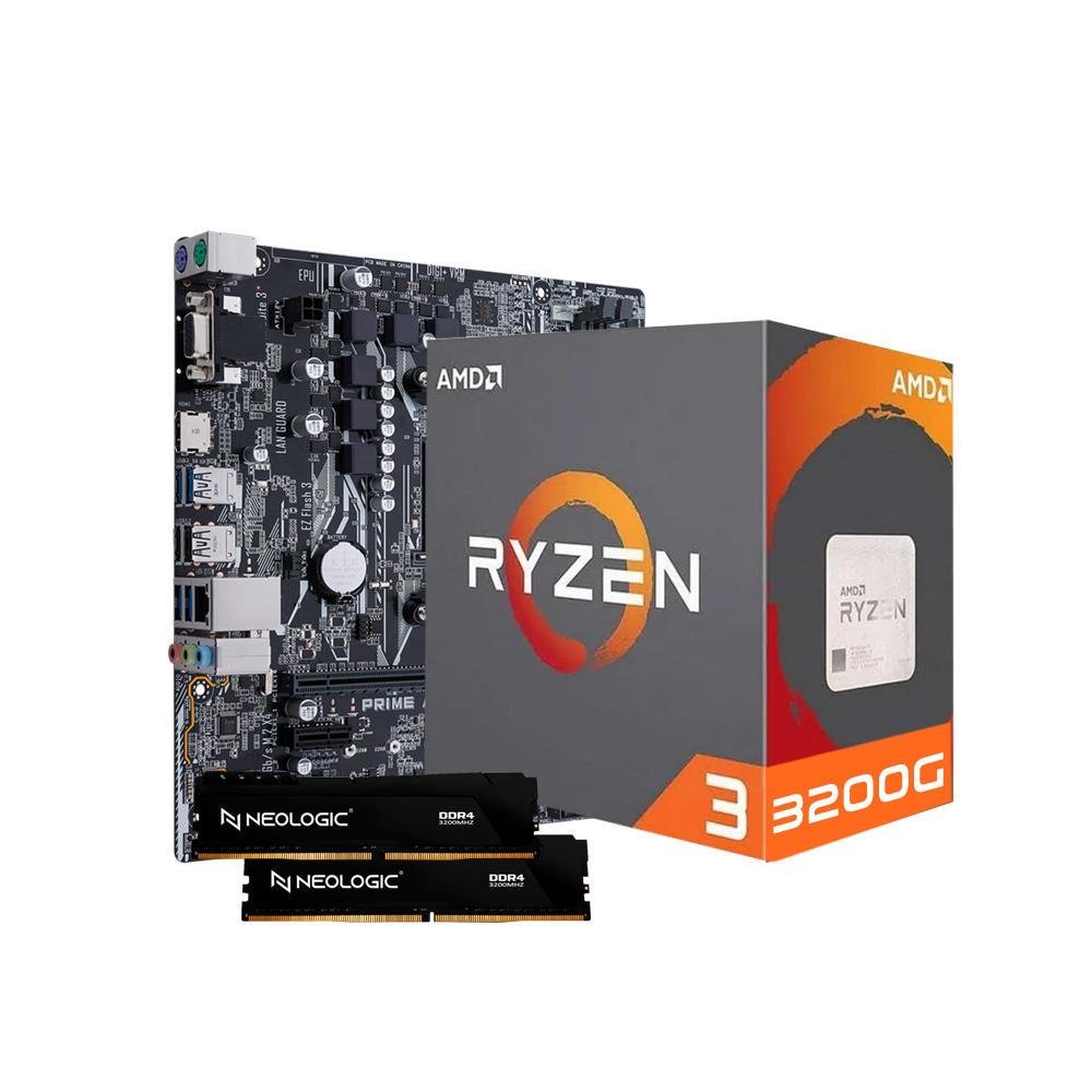 de um upgrade na sua máquina com nossos kits neologic upgrade e deixe sua maquina insana! o processador vai montado na placa mãe! placa mae a520 am4 ddr4 especificações: detalhes: cpu: amd socket am4 para 3rd gen amd ryzen e 3rd gen amd ryzen com radeon graphics chipset: amd a520 memória: 2x dimm máximo de 64gb tipo: ddr4 4600(o.c)/4400(o.c)/4000(o.c.)/3866(o.c.)/3733(o.c.)/3600(o.c.)/3466(o.c.)/3333(o.c.)/3200/3000/2800/2666/2400/2133 mhz un-buffered arquitetura de memória: dual channel o suporte a ecc memory (modo ecc) varia de acordo com a cpu. * a frequência de memória máxima suportada varia de acordo com o processador. processador amd ryzen 3 3200g características: – marca: amd – modelo: yd3200c5fhbox especificações: – nº de núcleos de cpu: 4 – threads: 4 – nº de núcleos de gpu: 8 – clock básico: 3,6 ghz – clock de max boost: 4 ghz – total de cache l1: 384kb – cache total l2: 2mb – cachê l3 total: 4mb – desbloqueado – cmos: finfet de 12nm – socket: am4 – versão pci express: pcie 3.0 x8 memoria gamer 32gb ddr4 u-dimm dissipador especificação: – tecnologia: ddr4 – capacidade: 16gb (2x16gb) – tipo de módulo: udimm – memória clock: 3200mhz – dissipador gamer: sim – cor: preto – memória para: desktop – gamer: sim – tensão: 1,35 v – taxa de transmissão: 24000 mb/s – quantidade de pinos: 288 ***produto não acompanha caixa comercial -NAC