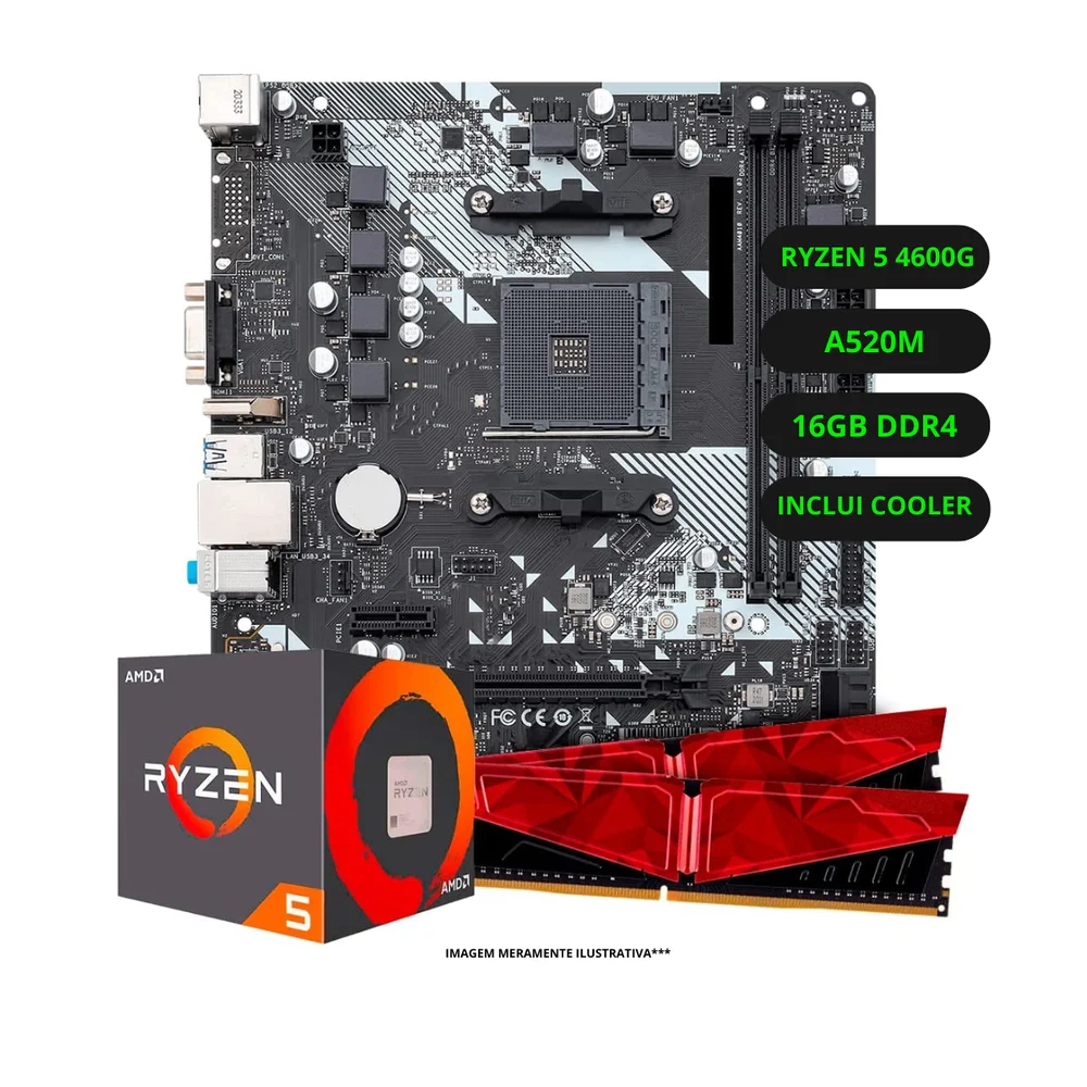 Kit Upgrade Amd Ryzen 5 4600g Vega 7 Placa Mãe A520 Memória Ram 16gb Ddr4 -NAC