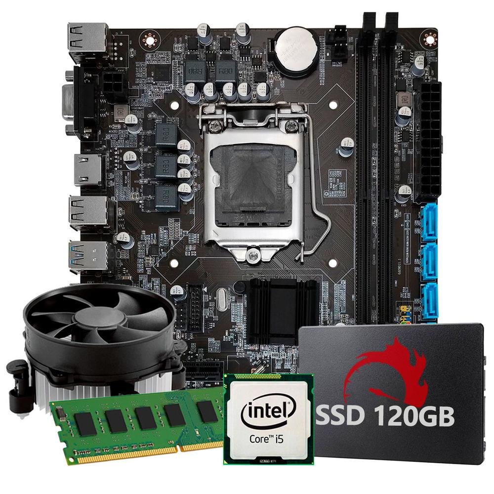 Marca: kit upgrade intel modelo: kit upgrade intel core i5 características principais: 1 – equipamento otimizado: preparado para lidar com as demandas do mundo empresarial moderno. 2 – desempenho de ponta: garanta consistência e confiabilidade em cada tarefa. 4 – fluidez e precisão: execute todas as suas atividades diárias sem interrupções ou atrasos. 5 – versatilidade sem comparação: seja para navegar na web, assistir a vídeos ou ouvir suas músicas favoritas, este computador não desaponta. 6 – trabalho e lazer: equilibrado para atender tanto suas necessidades de trabalho quanto de entretenimento. especificações: placa-mãe: chipset intel h110 conexões usb hdmi vga áudio porta lan – rj 45: gigabit 10/100/1000 conector sata iii 2x slots de memoria ram ddr4 processador: intel core i5 7ª geração socket lga 1151 acompanha cooler placa de vídeo: integrada memoria ram: 4gb ddr4 ssd: ssd 120gb obs: imagem ilustrativa do produto. não acompanha monitor, teclado, mouse ou caixas de som. não acompanha gravador de dvd. garantia: 365 dias -NAC