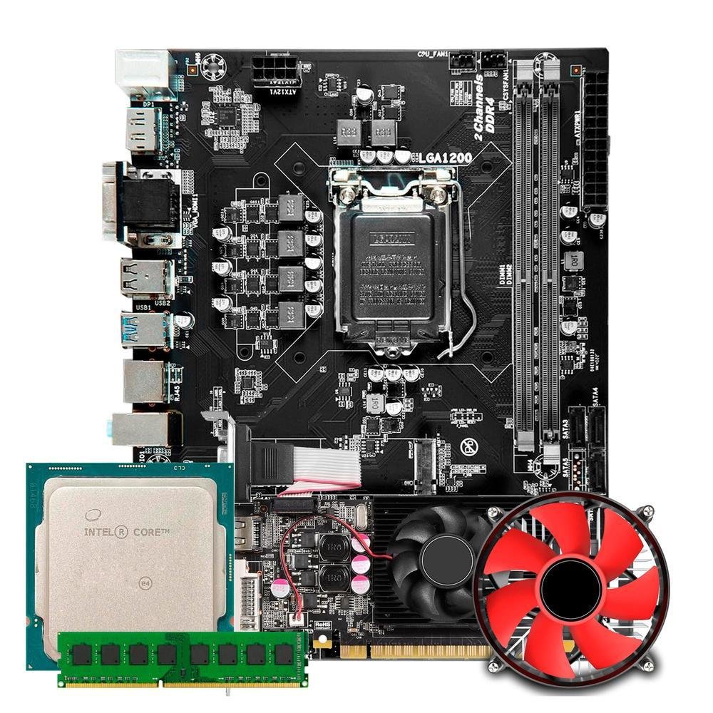 Kit placa mãe h510 ddr4 + processador intel core i3 10100f + memória ram 16gb + vga gt210 + cooler este kit poderá ser enviado com 02 pentes de 8gb ou apenas 01 de 16gb. -NAC
