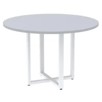 Mesa De Reunião Redonda P25 Pandin 110 Cm (largura) Tampo Mdp Cinza Pé Aço Tubular Branco -NAC