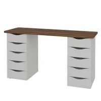 Mesa Para Computador Com 10 Gavetas Due – Artany – Nogal / Branco -NAC