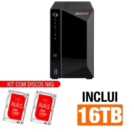Servidor NAS Asustor AS3302T V.2 16TB – Quad-Core 1.7 Ghz – 2GB RAM – 2.5 Gigabit – Transcodificação 4K – Inclui 2 HDs NAS de 8TB -NAC