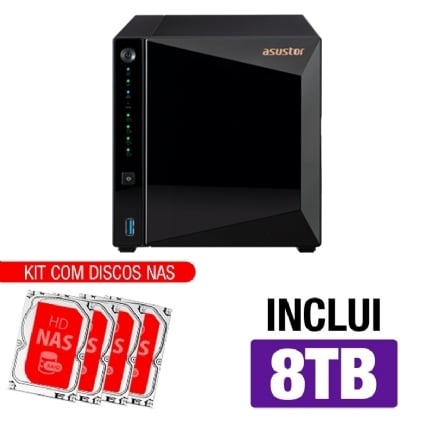 Servidor NAS Asustor AS3304T v2 – 8TB – Quad-Core 1.4 Ghz – 2GB RAM – 2.5 Gigabit – Transcodificação 4K – Inclui 4 HDs NAS de 2TB -NAC
