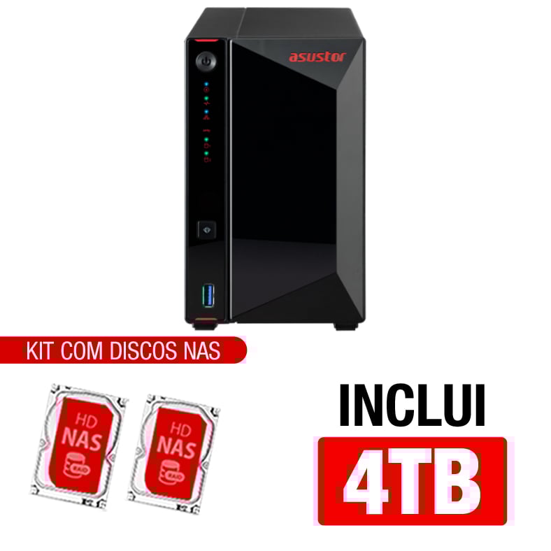 Servidor NAS Asustor AS5402T – 4TB – CPU Intel Quad-core – 4GB RAM – 2x 2.5GbE – Inclui 2 HDs NAS de 2TB -NAC
