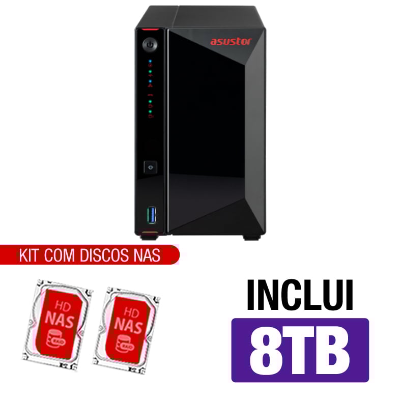 Servidor NAS Asustor AS5402T – 8TB – CPU Intel Quad-core – 4GB RAM – 2x 2.5GbE – Inclui 2 HDs NAS de 4TB -NAC