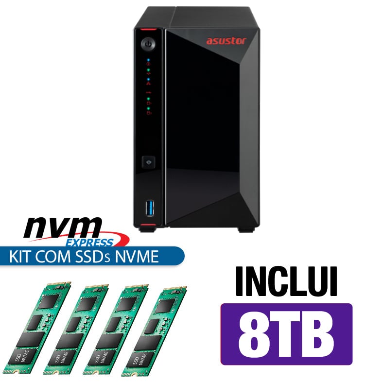 Servidor NAS Asustor AS5402T – 8TB – CPU Intel Quad-core – 4GB RAM – 2x 2.5GbE – Inclui 4 SSDs NVme de 2TB -NAC