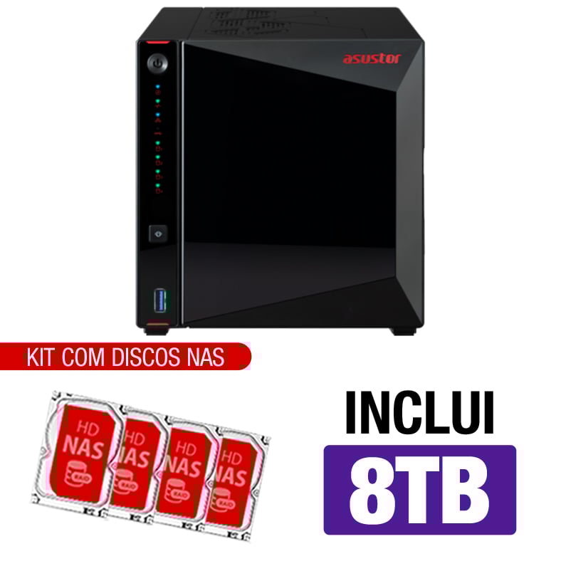 Servidor NAS Asustor AS5404T – 8TB – 4 Slots M.2 para SSDs NVMe – CPU Intel Quad-core 2.0GHz – 4GB RAM – 2x 2.5GbE – Inclui 4 HDs de 2TB -NAC