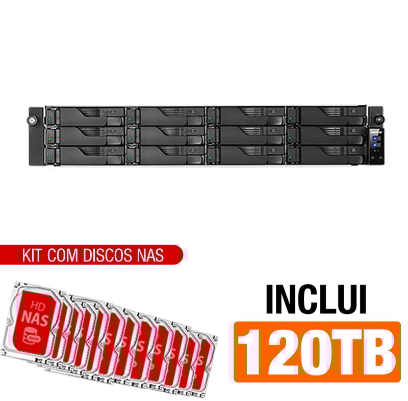 Servidor NAS Asustor AS6512RD – 120TB – Intel Quad-Core 2,1 GHz – 8GB DDR4 – 2x 2,5 GbE – Inclui 12 HDs NAS de 10TB -NAC