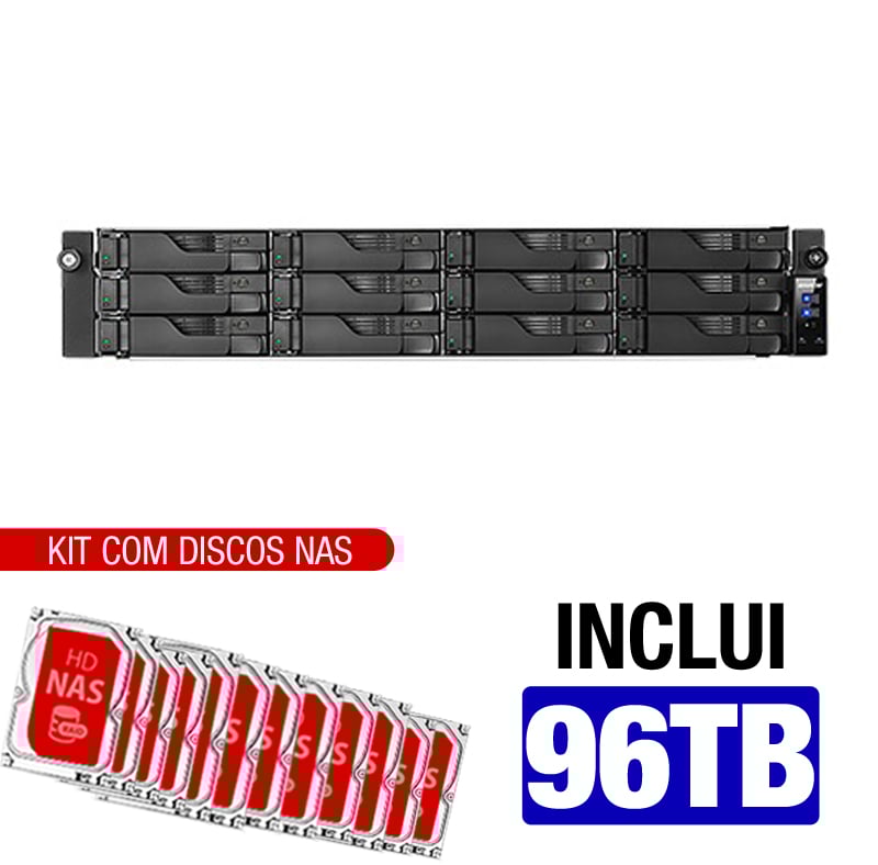 Servidor NAS Asustor AS6512RD – 96TB – Intel Quad-Core 2,1 GHz – 8GB DDR4 – 2x 2,5 GbE – Inclui 12 HDs NAS de 8TB -NAC