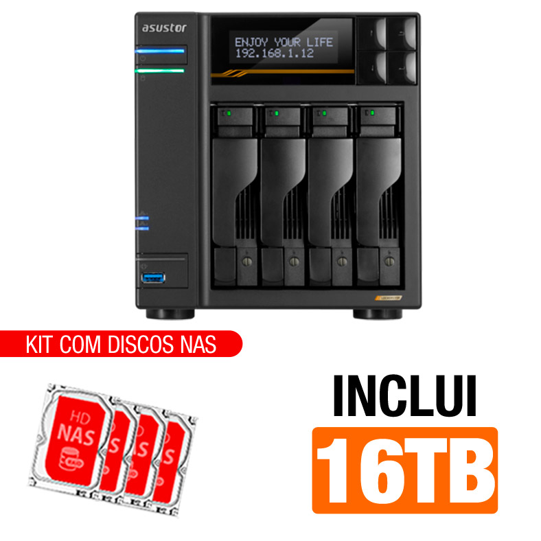 Servidor NAS Asustor AS6804T – 16TB – Intel Quad-Core 2,3 GHz – 16GB DDR5 – 2x 10GBe – 2x 2,5 GbE – Inclui 4 HDs NAS de 4TB -NAC