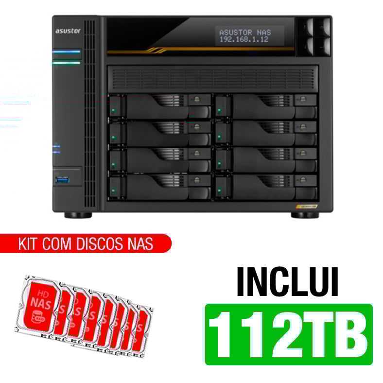 Servidor NAS Asustor AS6808T – 112TB – AMD Ryzen V3C14 – 16GB DDR5 – 2x 10GBe – 2x 2,5 GbE – Inclui 8 HDs NAS de 14TB -NAC