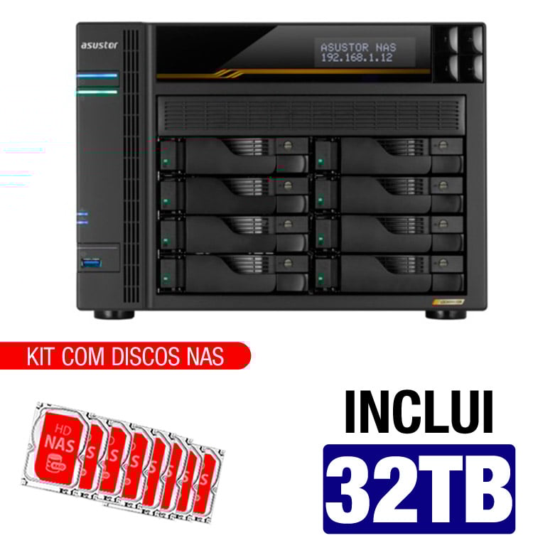 Servidor NAS Asustor AS6808T – 32TB – AMD Ryzen V3C14 – 16GB DDR5 – 2x 10GBe – 2x 2,5 GbE – Inclui 8 HDs NAS de 4TB -NAC