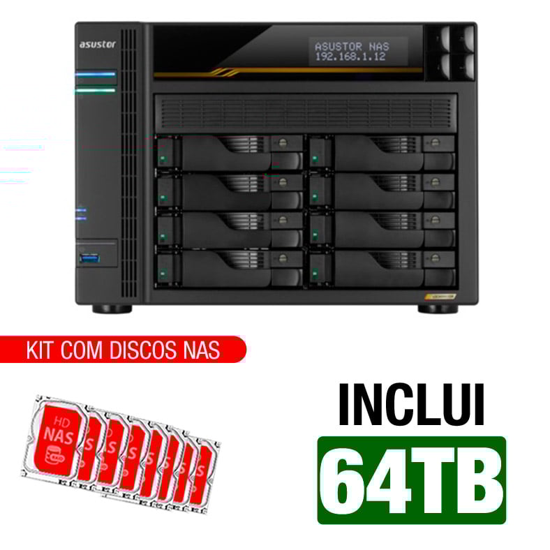 Servidor NAS Asustor AS6808T – 64TB – AMD Ryzen V3C14 – 16GB DDR5 – 2x 10GBe – 2x 2,5 GbE – Inclui 8 HDs NAS de 8TB -NAC