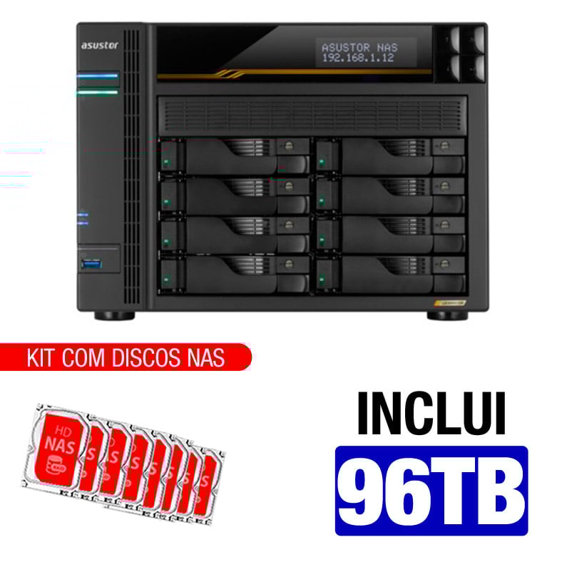 Servidor NAS Asustor AS6808T – 96TB – AMD Ryzen V3C14 – 16GB DDR5 – 2x 10GBe – 2x 2,5 GbE – Inclui 8 HDs NAS de 12TB -NAC