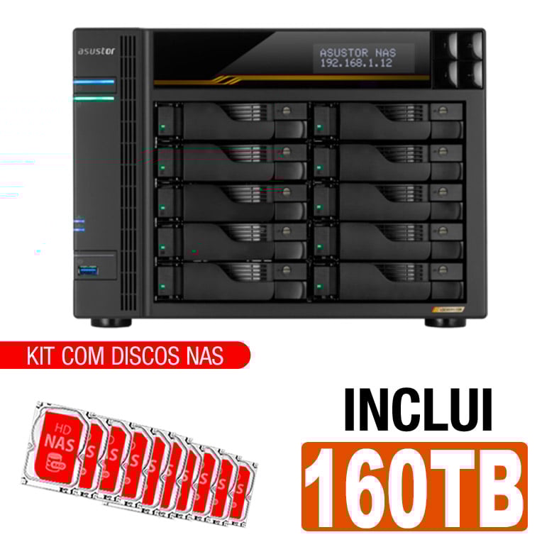 Servidor NAS Asustor AS6810T – 160TB – AMD Ryzen V3C14 – 16GB DDR5 – 2x 10GBe – 2x 2,5 GbE – Inclui 10 HDs NAS de 16TB -NAC