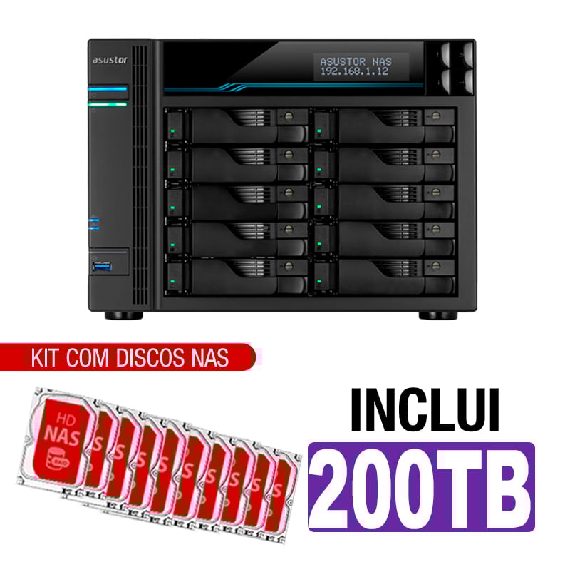 Servidor NAS Asustor AS7110T – 200TB – Intel Quad-Core 3.4GHz – 8GB – 1x 10GbE – Inclui 10 HDs NAS de 20TB -NAC