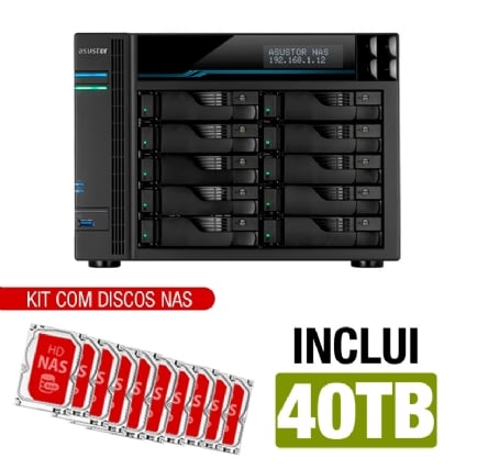 Servidor NAS Asustor AS7110T – 40TB – Intel Quad-Core 3.4 GHz – 8GB DDR4 – 1x 10GbE – 3x 2.5GbE – Inclui 10 HDs NAS de 4TB -NAC