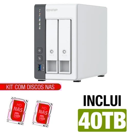 Servidor NAS Qnap TS-216G – 40TB – Quad-Core 2.0Ghz – 4GB RAM – 1x 2.5GBe – Inclui 2 HDs NAS de 20TB -NAC