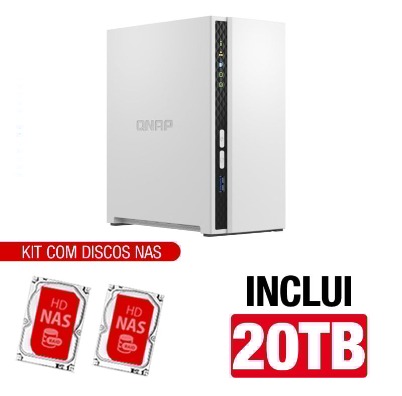 Servidor NAS Qnap TS-233 – 20TB – Quad-Core 2.0 Ghz – 2GB RAM – 1x 1Gbe – Inclui 2 HDs NAS de 10TB -NAC