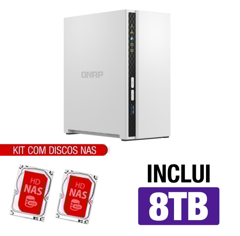 Servidor NAS Qnap TS-233 – 8TB – Quad-Core 2.0 Ghz – 2GB RAM – 1x 1Gbe – Inclui 2 HDs NAS de 4TB -NAC